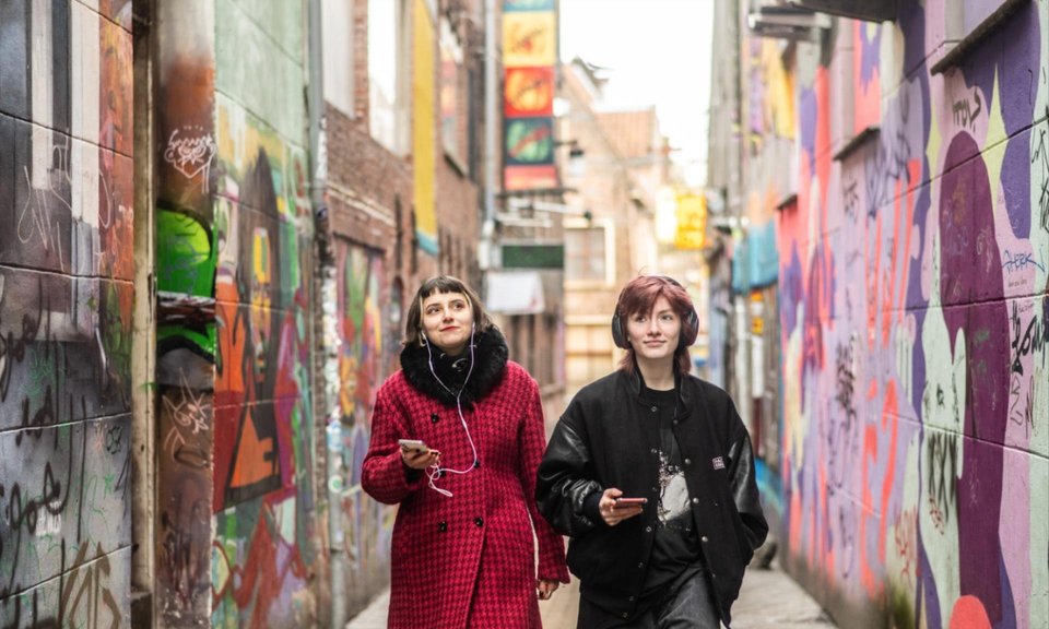 The podwalk is available in two languages. The Dutch version is narrated by NPO 3FM DJ Eva Cleven. The English version features the voice of Simone Angel, one of MTV's first presenters.